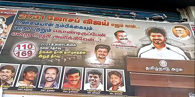 இந்நிலையில் மதுரையில் உள்ள நடிகர் விஜய்யின் ரசிகர்கள் ஒட்டியுள்ள சுவரொட்டி பரபப்பை ஏற்படுத்தி உள்ளது. அந்த சுவரொட்டியில் நடிகர் விஜய் முதலமைச்சராக பதவியேற்பது போல சித்தரித்து, 2031ல் ஜோசப் விஜய் எனும் நான் உண்மையான நம்பிக்கையும், மாறா பற்றும் கொண்டிருப்பேன் என உறுதி கூறுகிறேன் என பதவிப் பிரமாணம் எடுப்பது போன்ற வாசகங்களும், 2021 உள்ளாட்சியில் நல்ல தேர்வு நீங்கள் தான் தமிழகத்தின் இறுதி தீர்வு என ரசிகர்கள் ஒட்டியுள்ள போஸ்டர் பரபரப்பை ஏற்படுத்தி உள்ளது.