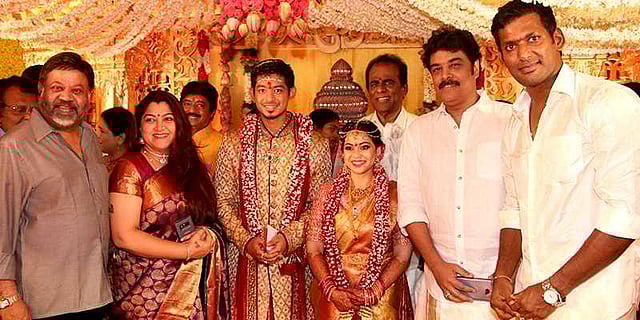 இதில் தயாரிப்பாளர்கள், கதிரேசன், ஞானவேல் ராஜா, சத்யஜோதி தியாகராஜன், ராக்லைன் வெங்கடேஷ், ரவி பிரசாத், நடிகர் சங்க துணை தலைவர் பொன்வண்ணன், பொருளாளர் கார்த்தி, சுந்தர்.சி, குஷ்பூ, ஹன்ஸ்ராஜ் சக்சேனா உட்பட ஏராளமான திரையுலகினர் மற்றும் பிரபலங்கள் கலந்துகொண்டு மணமக்களை வாழ்த்தினர்.