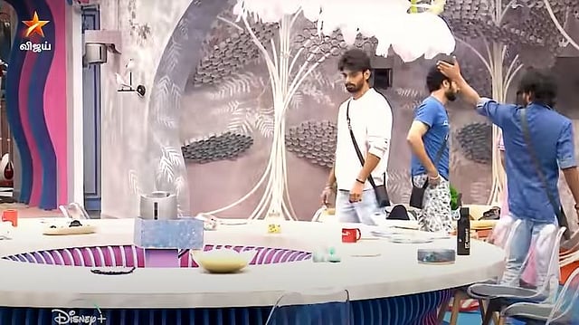 “அப்படியா... நான் போவேனா, பாக்கலாம்..... அப்படியே போனா உன்னை பார்த்துட்டு உன்னை ஹக் பண்ணிட்டு போறேன்” என்று சொல்லிட்டு போகிறார். விசித்திராவை வெளியேற்ற வேண்டும் என்று விஷ்ணுக்கு மட்டுமல்ல வீட்டிலிருக்கும் எல்லா போட்டியாளருக்கும் இருக்கும் ஒரு எண்ணம். இப்படி ஒவ்வோருத்தரும் தங்களுக்குள் உள்குத்து குத்திக் கொண்டிருக்கின்றனர்.