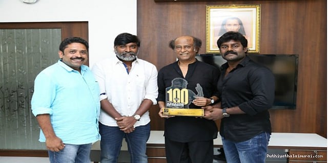 தர்மதுரை படத்தின் 100 ஆவது நாள் வெற்றியை கொண்டாடும் வகையில் படக்குழுவினர் சூப்பர் ஸ்டார் ரஜினிகாந்தை சந்தித்து படத்தின் 100 ஆம் நாள் கேடயத்தை வழங்கினர்.