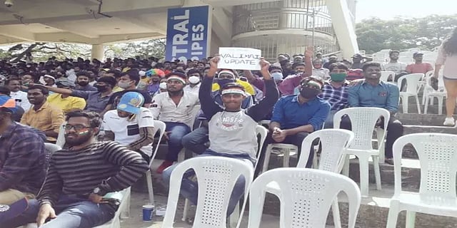 சென்னை சேப்பாக்கத்தில் நடைபெற்றுவரும் இந்தியா- இங்கிலாந்து அணிகளுக்கு இடையிலான இரண்டாவது டெஸ்ட் கிரிக்கெட் போட்டியில் அஜித் ரசிகர்கள் வலிமை அப்டேட் கேட்டு பதாகைகளுடன் வந்திருந்தனர்.
