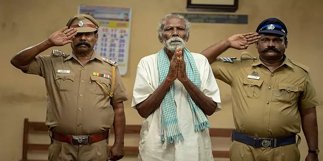 விஜய் சேதுபதி படத்திலிருந்தாலும், இந்தக் கதையின் நாயகன் அவரல்ல; 80 வயது முதியவரான நல்லாண்டிதான் நாயகன். இப்படத்தில் ‘மாயாண்டி’ எனும் கதாபாத்திரத்தில் நடித்திருக்கும் இந்த முதியவரின் வாழ்வியலைச் சுற்றியே நகர்கின்றன காட்சிகள். நல்லாண்டிக்கு நடித்து பழக்கமில்லை. ஆனால், வாழ்ந்திருக்கிறார். 80 ஆண்டுகள் இந்தப் பூமியில் வாழ்ந்திருக்கிறார். அதையே திரையிலும் செய்திருக்கிறார். அவர் வாழ்ந்திருக்கிறார் என்பதைவிட நல்லாண்டியின் வாழ்க்கையினை மணிகண்டன் ரகசியமாக நின்று இயல்பாக படமாக்கியிருக்கிறார் என்றுதான் சொல்லவேண்டும். அவ்வளவு இயல்பாக இருக்கிறது நல்லாண்டியின் நடிப்பும், அவரது காட்சிகளும்.