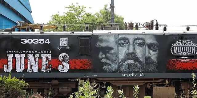 கமல்ஹாசன் நடித்து வெளியீட்டுக்கு தயாராக உள்ள 'விக்ரம்' திரைப்படத்துக்கு ரயில்களில் விளம்பரம் செய்யப்பட்டு வருகிறது.