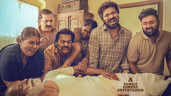 தந்தை மரணத்தில் ஒரு தர்மசங்கட சிக்கல், அதை எப்படி அக்குடும்பம் சமாளித்தது என்பதே `பெருசு’