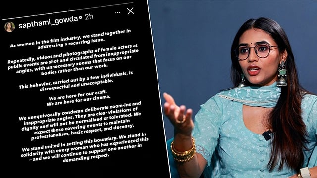 கன்னட திரையுலகில் பிரபலமான நடிகை சப்தமி கௌடா. `காந்தாரா' முதல் பாகத்தில் நடித்ததன் மூலம், இந்தியா முழுக்க பிரபலமானார். இவர் பொது நிகழ்வுகளில் கலந்துகொள்ளும் நடிகைகளை தவறான நோக்கங்களுக்காக மோசமான கோணங்களில் வீடியோ, போட்டோ எடுப்பதற்கு எதிர்ப்பு தெரிவித்து பதிவிட்டுள்ளார்.