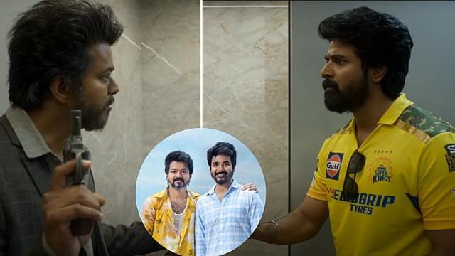 கடந்த செப்டம்பரில் வெளியான விஜய்யின் கோட் திரைப்படத்தில், க்ளைமேக்ஸ் காட்சியின்போது கேமியோ ரோலில் நடித்திருந்தார் சிவகார்த்திகேயன். அந்த காட்சி சிறிது நேரம்தான் என்றாலும், விஜய்க்கும் சிவகார்த்திகேயனுக்குமான உரையாடல் மிகவும் கவனம் ஈர்த்தது. குறிப்பாக, இந்த காட்சியில் ‘துப்பாக்கிய பிடிங்க சிவா’ என்று காந்தி பாத்திரத்தில் நடித்த விஜய், துப்பாக்கியை சிவகார்த்திகேயனிடம் ஒப்படைப்பார்.