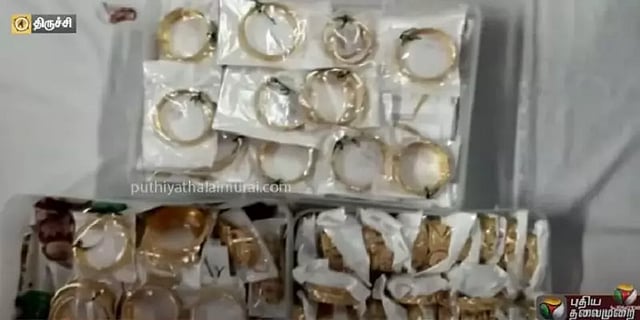 காரைக்காலில் இருந்து எர்ணாகுளம் செல்லும் விரைவு ரயிலில் தங்கம் கடத்தப்படுவதாக குற்றத் தடுப்புப்பிரிவு காவல்துறையினரும் ரயில்வே பாதுகாப்புப் படையினருக்கும் ரகசியத் தகவல் கிடைத்தது. அதன்பேரில், அந்த ரயில் திருச்சியை அடைந்தபோது, அதிலிருந்த பயணிகளின் உடைமைகளை அவர்கள் சோதனையிட்டனர். அப்போது, மேற்கு வங்கத்தைச் சேர்ந்த 2 பேர், திருச்சியை சேர்ந்த அருணன் ஆகியோரின் பெட்டிகளில் ஆறு புள்ளி எட்டு கிலோ எடையுள்ள தங்க நகைகள் இருந்தன. வெளிநாட்டு ரூபாய் நோட்டுகளும் இருந்தன.