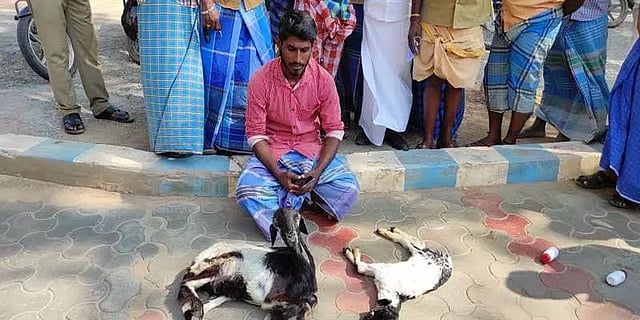 தீடீரென இறக்கும் தருவாயில் இருந்த ஆடு மற்றும் இறந்த ஆட்டுக்குட்டியோடு ஆட்சியர் அலுவலகம் வந்த இளைஞரால் பரபரப்பு ஏற்பட்டது. காவல்துறையினர் திருமங்கலம் காவல்நிலையத்தில் புகார் அளிக்கக்கோரி அறிவுறுத்தினர்.