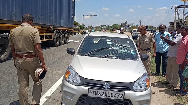 அப்போது ஈரோடு மாவட்டம் நசியனூர் அருகே தேசிய நெடுஞ்சாலையில் கார் சென்று கொண்டிருந்த போது பின்னால் மற்றொரு கார் மோதியுள்ளது. இதையடுத்து அந்தக் காரில் இருந்து இறங்கிய கும்பல் ஜானை சரமாரியாக வெட்டியுள்ளனர். இதில், ஜான் சம்பவ இடத்திலேயே உயிரிழந்தார். சரண்யா படுகாயமடைந்து நசியனூரில் தனியார் மருத்துவமனையில் சிகிச்சைக்காக அனுமதிக்கப்பட்டுள்ளார். சம்பவ இடத்தில் எஸ்.பி ஜவகர் விசாரணை மேற்கொண்டார்.
