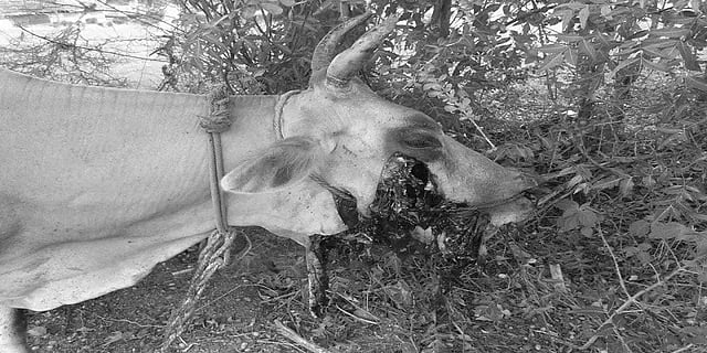 வேலூர் மாவட்டம் அணைக்கட்டு அடுத்த தோலப்பள்ளி கடலைக்குலம் கிராமத்தைச் சேர்ந்தவர் விவசாயி கண்ணையா. இவர் தனது மாடுகளை வழக்கம்போல், மேய்ச்சலுக்காக கொண்டுச் சென்றுள்ளார். மாடுகள் மேய்ந்து கொண்டிருந்தபோது திடீரென வெடிச்சத்தம் கேட்டுள்ளது. இதனையடுத்து அங்கு சென்று பார்த்தபோது, ஒரு பசுமாட்டின் வாய் சிதைந்து, ரத்த வெள்ளத்தில் சதை தொங்கியிருந்தது.