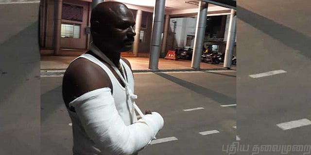 ஆந்திர மாநிலம் நெல்லுாரைச் சேர்ந்தவர் நாகமணி. தனது உறவினரை பார்க்க புரசைவாக்கத்தில் உள்ள தேவாலயத்திற்கு வந்துள்ளார். அப்போது இருசக்கர வாகனத்தில் வந்த அடையாளம் தெரியாத இரண்டு நபர்கள் அவரிடமிருந்து 3 சவரன் நகை மற்றும் செல்போனை பறித்து விட்டுச் சென்றனர். அந்தத் தருணத்தில் சாலையில் சென்றுக் கொண்டிருந்த போக்குவரத்து தலைமைக் காவலர் விஜயகுமார், நகை பறித்த இருவரையும் துரத்திச் சென்று பிடிக்க முற்பட்டார். காந்தி இர்வின் பாலம் அருகே மடக்கிய போது இருசக்கர வாகனத்தில் பின்னால் இருந்த நபர் தான் கையில் வைத்திருந்த கத்தியால் விஜயகுமாரை சரமாரியாக தாக்கியுள்ளார். இதில் படுகாயமடைந்த போதிலும், விஜயகுமார், ஒரு கொள்ளையனைப் பிடித்து வேப்பேரி காவல்நிலையத்தில் ஒப்படைத்தார்.