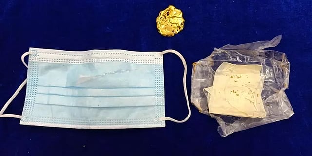 ஃபிளை துபாய் விமானம் மூலம் துபாயில் இருந்து சென்னை வந்த புதுக்கோட்டையை சேர்ந்த முகமது அப்துல்லா (40) என்பவர் விமான நிலையத்தை விட்டு அவசரமாக வெளியேற முயன்றதையடுத்து, வெளியே செல்லும் வழியில் அதிகாரிகளால் தடுத்து நிறுத்தப்பட்டார். விசாரணையின்போது அவர் பதற்றத்துடன் காணப்பட்டதாலும், அவரளித்த பதில்கள் தெளிவாக கேட்காததாலும், அவரது முகக் கவசத்தை கழட்டுமாறு அவர் கேட்டுக்கொள்ளப்பட்டார். அதற்கு அவர் எதிர்ப்பு தெரிவித்த நிலையில், அவரது முகக்கவசம் வழக்கத்தை விட அதிக எடையில் இருந்ததும் கண்டறியப்பட்டது.