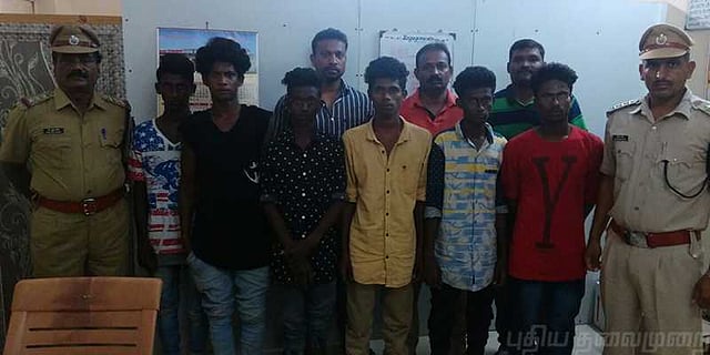 டிக்கெட் எடுக்காமல் ரயிலின் முன்பதிவு பெட்டியில் ஏறிக்கொண்டு பயணிகளை அச்சுறுத்தும் விதத்தில் நடந்து கொண்ட 8 பேரை காவல்துறையினர் கைது செய்தனர்.