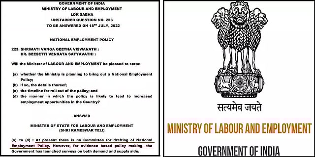 இந்நிலையில் இன்று இதுதொடர்பாக எம்.பி. வெங்கட சத்யவதி வேலைவாய்ப்பு கொள்கை உருவாக்கும் திட்டம் குறித்து கேள்வி எழுப்பியிருந்தார். அதற்கு பதிலளித்த மத்திய தொழிலாளர் மற்றும் வேலைவாய்ப்பு அமைச்சர் ராமேஷ்வர், “தற்போதைக்கு தேசிய வேலைவாய்ப்பு கொள்கை ஏற்படுத்தவோ, அது தொடர்பாக வரைவறிக்கையை நிர்ணயிக்கவோ எவ்வித தனி குழுவும் நியமிக்கப்படவில்லை. இருப்பினும், ஆதார அடிப்படையிலான கொள்கைகளை உருவாக்குவதற்காக, சில முயற்சிகளை அரசு மேற்கொண்டு வருகிறது” என்று தெரிவித்தார்.
