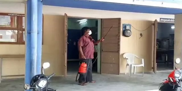 சேலத்தில் 10 மற்றும் 12-ஆம் வகுப்பு மாணவர்களை ஒழுங்குபடுத்தும் பணியில் ஈடுபட்டு வந்த ஆசிரியைக்கு கொரோனோ தொற்று உறுதி செய்யப்பட்டதால் பள்ளியில் கிருமிநாசினி தெளிக்கும் பணியில் மாநகராட்சி ஊழியர்கள் ஈடுபட்டுள்ளனர்.