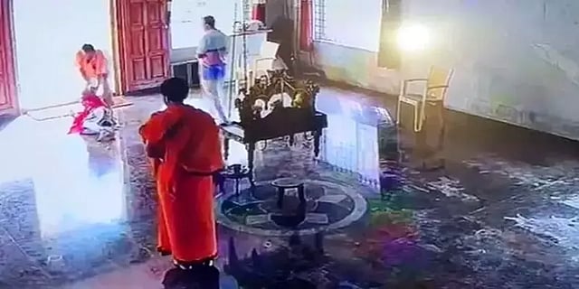 கர்நாடக மாநிலம் பெங்களூரு அமிர்தஹள்ளி என்ற பகுதியில் புகழ்பெற்ற நரசிம்ம சுவாமி கோயில் உள்ளது. இந்தக் கோயிலுக்கு பெண் ஒருவர் சாமி கும்பிடச் சென்றுள்ளார். ஆனால், அவரை உள்ளே விடாமல், அவரது தலைமுடியை இழுத்துப் பிடித்தபடி வாசலில் கொண்டுபோய் விடுகிறார். இந்தச் சம்பவம் அப்பகுதியில் பெரும் பரபரப்பை ஏற்படுத்திய நிலையில், இதுதொடர்பாக காவல் துறையில் புகார் அளிக்கப்பட்டுள்ளது.