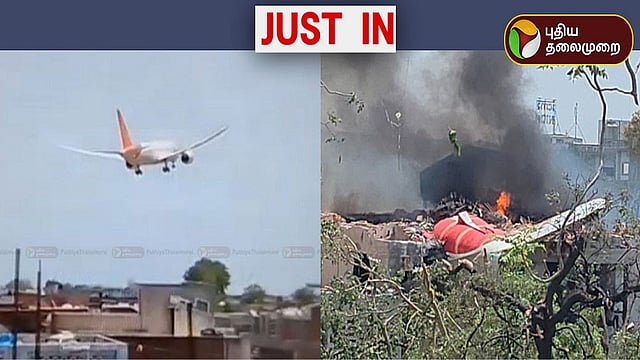 குஜராத் மாநிலம் அகமதாபாத்தில் உள்ள சர்தார் வல்லபாய் படேல் சர்வதேச விமான நிலையத்திலிருந்து புறப்பட்ட ஏர் இந்தியா விமானம் விபத்துக்குள்ளானது. ஏர் இந்தியாவின் B 787-8 ட்ரீம்லைனர் விமானம் மதியம் 1.40 மணியளவில் லண்டனில் உள்ள கேட்விக் நகரை நோக்கிப் புறப்பட்ட நிலையில் சில நொடிகளில் விபத்திற்குள்ளானது. விபத்து நடந்த இடத்திலிருந்து கரும்புகைகள் கிளம்பிய காட்சிகள் வெளியாகியுள்ளன.
