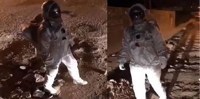 கர்நாடக மாநிலத்தைச் சேர்ந்தவர் ஓவியர் பாதல் நஞ்சுண்டசுவாமி. இவர் விண்வெளி வீரர் போல் ஆடை அணிந்தபடி சாலையில் நடந்த வீடியோவை தன்னுடைய சமூக வலைதள பக்கத்தில் பதிவிட்டார். இந்த வீடியோவை பார்த்த பலரும் அதிர்ச்சி அடைந்தனர். சுமார் ஒரு நிமிடம் ஓடக்கூடியது அந்த வீடியோ.