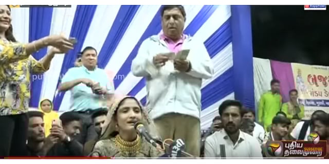 குஜராத்தில் நடந்த தூய்மை இந்தியா திட்டத்துக்கான விழிப்புணர்வு இசை நிகழ்ச்சியில் பிரபல பாடகி மீது பார்வையாளர்கள் பண மழை பொழிந்தனர்.