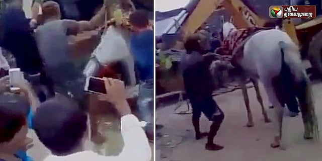 உத்தரப் பிரதேசத்தில் குதிரை மீது ஊர்வலம் சென்ற மணமகன் கீழே விழுந்தார்.