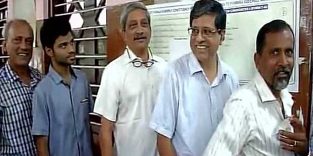 பனாஜி தொகுதியில் கோவா முதல்வர் மனோகர் பாரிக்கர் வாக்குப் பதிவு தொடங்கிய உடனே வரிசையில் நின்று வாக்களித்தார்.