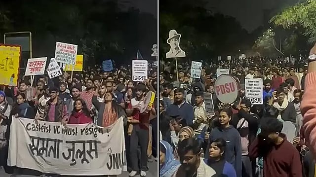 டெல்லி ஜவஹர்லால் நேரு பல்கலைக்கழக துணைவேந்தர் சாந்தி ஸ்ரீ துலிபுடி பண்டிட்டின் சர்ச்சைக்குரிய கருத்துகளைக் கண்டித்து, ஞாயிற்றுக்கிழமை இரவு நூற்றுக்கணக்கான மாணவர்கள் பல்கலைக்கழக வளாகத்தில் எதிர்ப்புப் பேரணியை நடத்தினர்.
