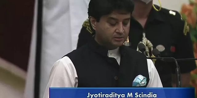 கடந்த ஆண்டு மார்ச்சில் காங்கிரஸில் இருந்து விலகி தனது ஆதரவாளர்களுடன் பாஜக பக்கம் தன் விசுவாசத்தை திருப்பினார். அவருடன் காங்கிரஸ் எம்.எல்.ஏக்களாக இருந்த 22 பேரும் தங்களது பதவியை ராஜினாமா செய்ய மத்தியப் பிரதேச அரசியல் ஆட்டம் கண்டது. காங்கிரஸ் ஆட்சி கவிழ்ந்தது. 2018-ல் ஆட்சியை இழந்த பாஜக சிந்தியாவின் தயவால் 2019-ல் ஆட்சிக்கட்டிலை தக்க வைத்துக்கொண்டது. முதல்வராக சிவராஜ் சிங் சௌகான் மீண்டும் பதவியேற்றுக்கொண்டார். சிந்தியாவின் இந்த உதவிக்கு கைமாறாகத் தான் தற்போது அவருக்கு மத்திய அமைச்சர் பதவி கொடுக்கப்பட்டுள்ளது. மத்திய அமைச்சராக அவர் பதவியேற்றிருக்கிறார்.