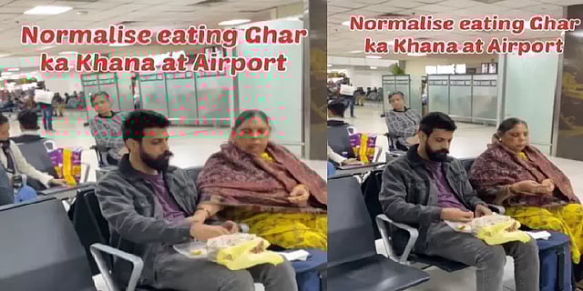 அதேவேளையில், விமான நிலையத்தில் காத்திருக்கும் நேரத்தில் வீட்டில் இருந்து சமைத்து கொண்டு வரப்பட்ட உணவை சாப்பிட்டால் கொலை, கொள்ளையை செய்த குற்றவாளிகளை போன்ற பார்வையையே அனுபவிக்க நேரிடும். ஆனால் இவற்றையெல்லாம் பொருட்படுத்தாது சாவகாசமாக தன் அம்மா கையால் சமைத்த பராத்தாக்களை ஏர்ப்போர்ட்டின் காத்திருப்பு அறையில் வைத்து சாப்பிட்டதை அனைவருக்கும் தெரியப்படுத்தும் விதமாக தனது ட்விட்டர் பக்கத்தில் பதிவிட்டிருக்கிறார் மதுர் சிங் என்ற பயனர்.