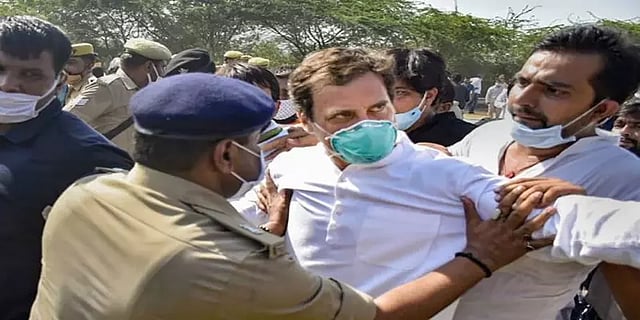 ஹத்ராஸை சேர்ந்த 19 வயது இளம்பெண் கூட்டு பாலியல் வன்கொடுமை செய்யப்பட்டு உயிரிழந்தார், அந்த பெண்ணின் குடும்பத்தினரை சந்திக்க சென்ற ராகுல் காந்தி மற்றும் பிரியங்கா காந்தி ஆகியோர் தடுத்து நிறுத்தப்பட்டனர். அப்போது போலீசாருடன் ஏற்பட்ட தள்ளுமுள்ளுவில் ராகுல்காந்தி கீழே விழுந்தார்.