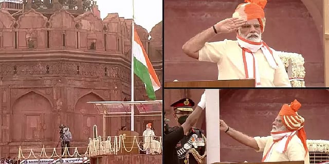 டெல்லி செங்கோட்டையில் பிரதமர் மோடி தேசியக் கொடியை ஏற்றினார்.
