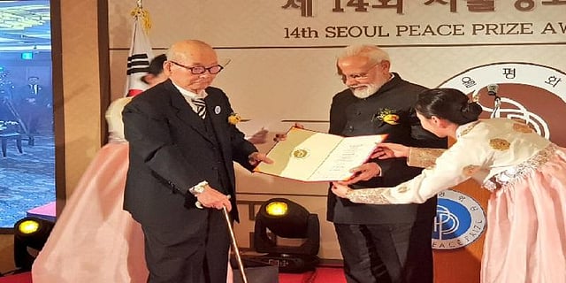 பிரதமர் மோடிக்கு தென் கொரியா அரசு சியோல் அமைதி விருது வழங்கி கவுரவித்துள்ளது.