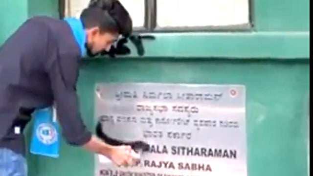 இதற்கிடையில் அம்மாநிலத்திலுள்ள மாணவர் காங்கிரஸார் பெங்களூரு அலி அஸ்கார் சாலையில் உள்ள மத்திய நிதியமைச்சர் நிர்மலா சீதாராமன் அலுவலகத்தில் கருப்பு மை பூசி அலுவலகத்திற்கு முன் போராட்டம் நடத்தினர்.