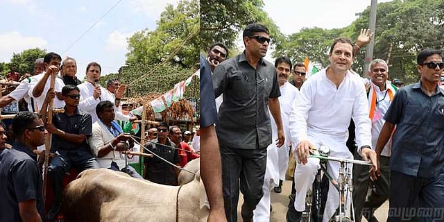 கர்நாடக சட்டப்பேரவைத் தேர்தலையொட்டி, கோலார் நகரில் ராகுல் காந்தி வாக்கு சேகரிப்பில் ஈடுபட்டார். பொதுமக்களுடன் சேர்ந்து பேருந்தில் பயணம் செய்தும், பின்னர் மாட்டுவண்டியில் சென்றும் அவர் வாக்கு சேகரித்தார். அதன்பிறகு, நடைபெற்ற பேரணியில் சைக்கிள் ஓட்டியபடி சென்று, காங்கிரஸ் வேட்பாளர்களுக்கு ஆதரவு திரட்டினார். ராகுல் காந்தியுடன் ஏராளமான தொண்டர்களும் பேரணியில் பங்கேற்றனர்.