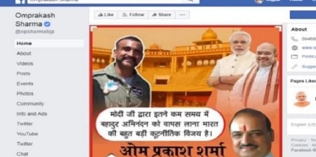 இந்நிலையில், விமானப்படை விங் கமாண்டர் அபிநந்தன் படத்தை தேர்தல் பிரச்சார போஸ்டரில் பயன்படுத்தியதாக டெல்லியைச் சேர்ந்த பாஜக எம்.எல்.ஏ ஓம் பிரகாஷ் ஷர்மாவுக்கு தேர்தல் ஆணையம் நோட்டீஸ் அனுப்பியுள்ளது. எம்.எல்.ஏ ஓம் பிரகாஷ் தன்னுடைய ஃபேஸ்புக் பக்கத்தில் பிரச்சாரம் செய்யும் வகையில் ஒரு போஸ்டரை பதிவிட்டு இருந்தார்.