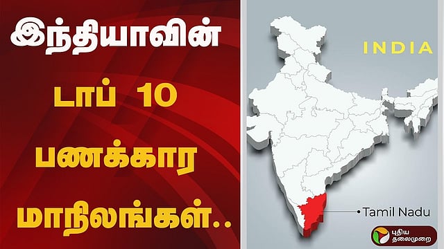 இந்தியாவின் டாப் 10 பணக்கார மாநிலங்களின் பட்டியலில், குஜராத், உத்தரபிரதேசத்தை பின்னுக்கு தள்ளி, தமிழ்நாடு 2 ஆம் இடத்திற்கு முன்னேறியுள்ளது. தேசிய மொத்த உள்நாட்டு உற்பத்தியில் தமிழ்நாட்டின் பங்கு, 8 புள்ளி 90 சதவீதமாக உள்ளது.
