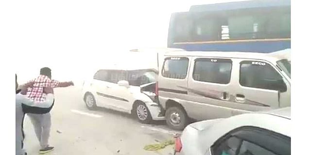 டெல்லியில் காற்று மாசுபாடு மற்றும் பனிமூட்டம் காரணமாக நெடுஞ்சாலையில் சென்ற 18 கார்கள், அடுத்தடுத்து மோதிக்கொண்ட வீடியோ காட்சி காண்போரை திகைக்க வைத்துள்ளது.