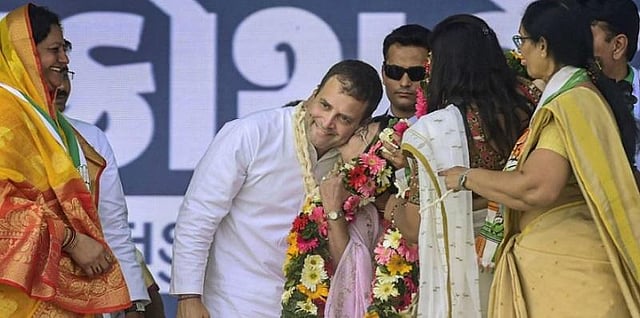 இந்நிலையில், வால்சாட் பகுதியில் நடைபெற்ற தேர்தல் பரப்புரைக் கூட்டத்தில் பங்கேற்ற ராகுல் காந்திக்கு கட்சியின் பெண் நிர்வாகிகள் புடைசூழச் சென்று மாலை அணிவித்தனர். அப்போது பெண் ஒருவர் ராகுலுக்கு திடீரென கன்னத்தில் முத்தம் கொடுத்த சம்பவம் பரபரப்பை ஏற்படுத்தியது.