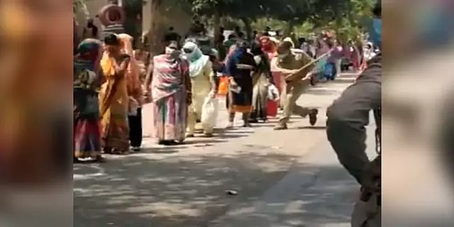 உத்தரப் பிரதேச மாநிலம் நொய்டாவில் அத்தியாவசிய பொருள்களை பெற நீண்ட வரிசையில் மணிக்கணக்கில் நின்றுக் கொண்டிருந்த பெண்களை போலீஸ் ஒருவர் லத்தியால் தாக்கினார். இதுகுறித்த வீடியோ பரபரப்பை ஏற்படுத்தியுள்ளது.