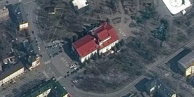 இந்நிலையில், மார்ச் 14 ஆம் தேதி அந்த திரையரங்கை செயற்கைக்கோளிலிருந்து எடுக்கப்பட்ட புகைப்படத்தை மாக்ஸர் டெக்னாலஜிஸ் என்ற நிறுவனம் வெளியிட்டுள்ளது. அந்த திரையரங்கின் முன் குழந்தைகள் என்ற வார்த்தை ரஷ்ய மொழியில் தரையில் எழுதப்பட்டிருப்பதையும் அந்த புகைப்படம் சுட்டிக்காட்டியுள்ளது.