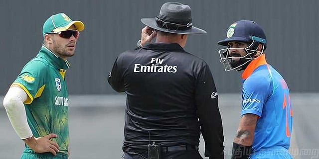தென்னாப்பிரிக்காவுக்கு எதிரான கிரிக்கெட் போட்டியில் இந்திய அணி வெற்றி பெற 2 ரன்களே தேவைப்பட்ட நிலையில் உணவு இடைவேளையை நடுவர் அறிவித்தார்.