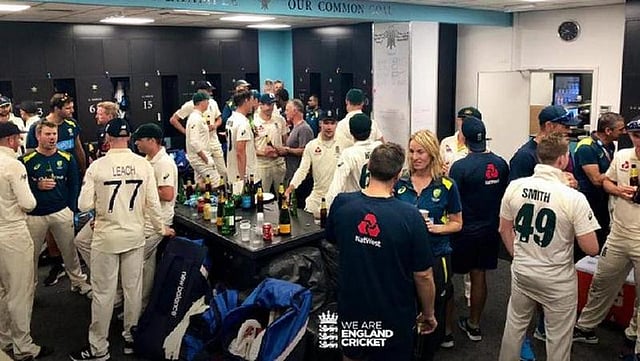 ஆஷஸ் தொடருக்கு பின்பு ஆஸ்திரேலியா மற்றும் இங்கிலாந்து அணியின் வீரர்கள் ஒரே ட்ரெஸ்சிங் ரூம்மில் இருந்து கொண்டாடி மகிழ்ந்துள்ளனர்.