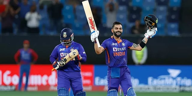மறுபுறம் பந்துகளை பவுண்டரி, சிக்சருக்கு விரட்டிய விராட் கோலி, 1019 நாள்களுக்குப் பிறகு சர்வதேச களத்தில் தனது சதத்தை பதிவு செய்தார். கோலியின் கிரிக்கெட் வரலாற்றில் இது 71வது சதம் ஆகும். அதேநேரம், டி20 கிரிக்கெட்டில் இதுவே விராட் கோலிக்கு முதல் சதம் ஆகும். சதம் எடுத்த பின்பும் அதிரடியாக ஆடிய கோலி, கடைசி வரை அவுட் ஆகாமல் இருந்து மொத்தம் 61 பந்துகளை சந்தித்து 122 ரன்களை குவித்தார். இதனால் 20 ஓவர்கள் முடிவில் 212 ரன்கள் என்ற இமாலய ஸ்கோரை எட்டியது இந்திய அணி.