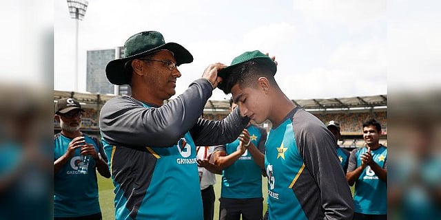 அவருக்கு, டெஸ்ட் போட்டிக்கான பாகிஸ்தான் அணியின் தொப்பியை, அந்த அணியின் பந்துவீச்சுப் பயிற்சியாளர் வாக்கர் யூனுஸ் வழங்கினார்.