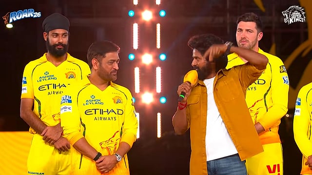 சென்னை சூப்பர் கிங்ஸ் அணியின் ROAR 2026 நிகழ்ச்சியில் தோனி, ஓய்வு குறித்து கேள்வி எழுப்பிய சிவகார்த்திகேயனுக்கு, 'WAIT FOR IT' என பதிலளித்தார். இந்த நிகழ்ச்சியில் சிஎஸ்கேவின் HALL OF FAME பட்டம் ஹைடன் மற்றும் ரெய்னாவிற்கு வழங்கப்பட்டது. சஞ்சு சாம்சன் உள்ளிட்ட புதிய வீரர்களுக்கு ரசிகர்கள் உற்சாக வரவேற்பு அளித்தனர்.