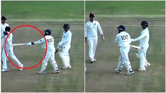 சிறப்பாக விளையாடிய பிரித்விஷா அவுட்டான போது, அவரை கிண்டல் செய்யும் விதமாக ‘தேங்க் யூ’ என்று நக்கல் செய்துள்ளார் சர்பராஸ் கானின் சகோதரர் முஷீர் கான். ஏற்கனவே மும்பை அணியிலிருந்து வெளியேறி மகராஷ்டிரா அணிக்காக விளையாடும் பிரித்வி ஷாவால் அவர் சொன்ன தொனியை பொறுத்துகொள்ள முடியாமல் அவரை பேட்டால் அடிக்க முயன்றார்.