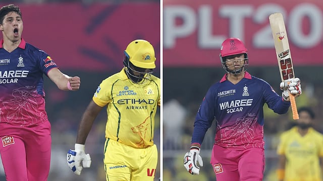 குவஹாத்தியில் பரபரப்பாக தொடங்கிய போட்டியில் டாஸ் வென்ற ராஜஸ்தான் ராயல்ஸ் அணி கேப்டன் ரியான் பராக் பந்துவீச்சை தேர்வுசெய்தார். அதன்படி முதலில் பேட்டிங் செய்த சென்னை அணியில் தொடக்க வீரர்களாக சஞ்சு சாம்சன் மற்றும் ருதுராஜ் கெய்க்வாட் இருவரும் களமிறங்கினர். இரண்டு பேருமே சுமாரான ஆட்டத்தை வெளிப்படுத்தி 6, 6 ரன்களுக்கு ஆட்டமிழக்க, 3வது வீரராக களமிறங்கிய ஆயுஸ் மாத்ரே 0 ரன்னிலும், 4வது வீரராக களமிறங்கிய மேத்யூ ஷார்ட் 2 ரன்னிலும் அடுத்தடுத்து வெளியேறி அதிர்ச்சி கொடுத்தனர்.