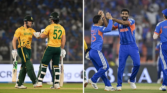 2026 டி20 உலகக்கோப்பை சூப்பர் 8 சுற்றில், தென்னாப்பிரிக்கா 187 ரன்கள் குவித்து இந்தியாவுக்கு சவால் விட்டது. பும்ரா மற்றும் அர்ஷ்தீப் சிங் தொடக்கத்தில் விக்கெட்டுகளை வீழ்த்தினாலும், டெவால்ட் பிரேவிஸ் மற்றும் டேவிட் மில்லர் பார்ட்னர்ஷிப் மூலம் தென்னாப்பிரிக்கா அணியை மீட்டனர். ட்ரிஸ்டன் ஸ்டப்ஸ் கடைசி ஓவர்களில் அதிரடி காட்டி அணியை 187 ரன்கள் வரை கொண்டு சென்றார்.