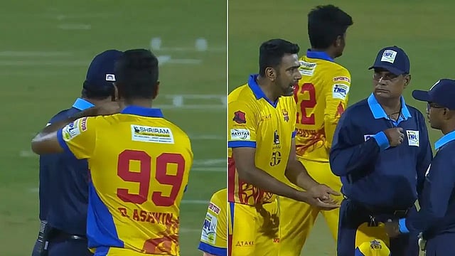 இந்தப் போட்டியில் திண்டுக்கல் அணி 6 விக்கெட்டுகள் வித்தியாசத்தில் வெற்றிபெற்றன. இந்நிலையில், இந்தப் போட்டியில் அஸ்வின் செய்த சம்பவத்தை அடுத்து நெட்டிசன்கள் கலாய்த்து வருகின்றனர். முதல் இன்னிங்சில் திருச்சி அணி பேட்டிங் செய்துகொண்டிருந்தபோது, திண்டுக்கல் அணியின் கேப்டனான அஸ்வின் 13-வது ஓவரை வீசினார். அப்போது 13-வது ஓவரின் 5-வது பந்தை அவர் வீசியபோது, திருச்சி அணி வீரர் ராஜ்குமார் விக்கெட் கீப்பரிடம் கேட்ச் ஆகியிருந்தார். இதையடுத்து கள நடுவர் ராஜ்குமாருக்கு அவுட் கொடுத்தார்.