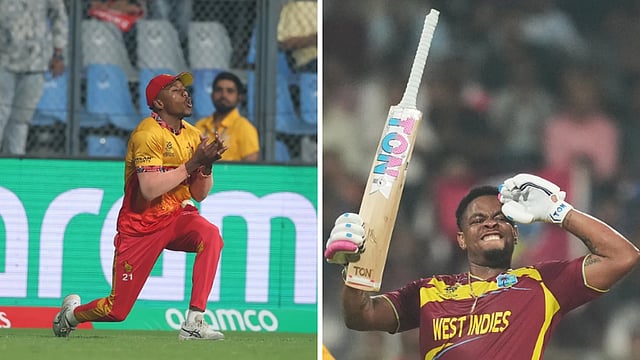 மும்பை வான்கடே மைதானத்தில் பரபரப்பாக தொடங்கிய போட்டியில் டாஸ் வென்ற ஜிம்பாப்வே அணி வெஸ்ட் இண்டீஸை பேட்டிங் செய்ய அழைத்தது. அதன்படி முதலில் பேட்டிங் செய்த வெஸ்ட் இண்டீஸ் அணி 17 ரன்னுக்கே முதல் விக்கெட்டை இழந்து தடுமாறியது. தொடர்ந்து வந்த வெஸ்ட் இண்டீஸின் அதிரடி வீரர் ஷிம்ரன் ஹெட்மயரும் காற்றில் கேட்ச் கொடுக்க, கைக்கு வந்த கேட்ச்சை கோட்டைவிட்டார் ஜிம்பாப்வே ஃபீல்டர்.