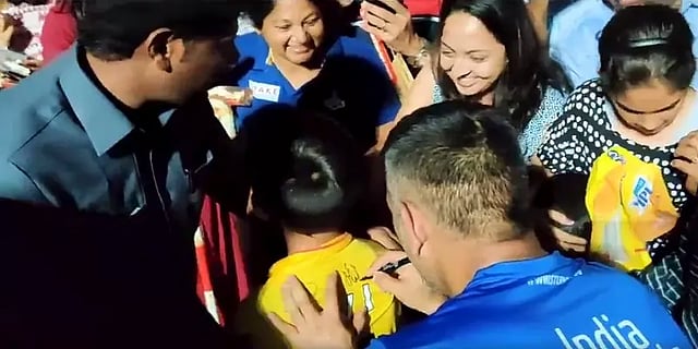 மேலும், கிரிக்கெட் பேட், அவரது புகைப்படங்கள் போன்றவற்றிலும் தோனி ஆட்டோகிராப் போடுகிறார். ரசிகர்கள் உற்சாகத்துடன் அவருடன் செல்ஃபி எடுத்துக் கொள்கின்றனர். மேலும், இளம் கிரிக்கெட் வீரர்கள் சிலருடன் தோனி உரையாடுகிறார். அந்த வீடியோவில், ஒருவர் இது உங்களுடைய சொந்த ஊர் ஆகிவிட்டது, உங்களை எப்போதும் வரவேற்கிறோம் என்று கூறுகிறார்.